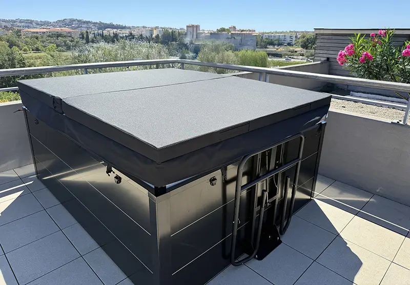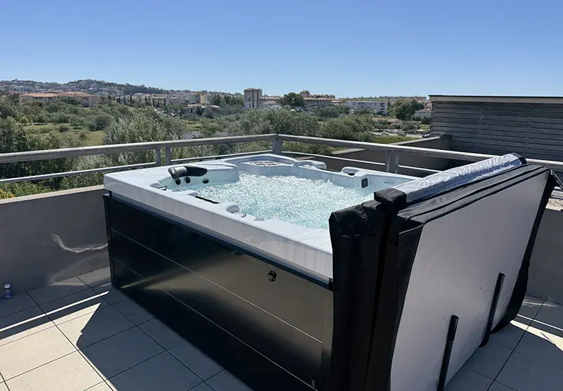Encore une nouvelle installation de spa Napoli Luxe New qui s’intègre avec une parfaite harmonie sur une terrasse élégante ! Ses 9 programmes thérapeutiques interactifs offrent une expérience de relaxation sur mesure. Aromathérapie, chromothérapie et fontaine RGB font de ce spa un véritable art de vivre pensé pour allier bien-être profond et design.
